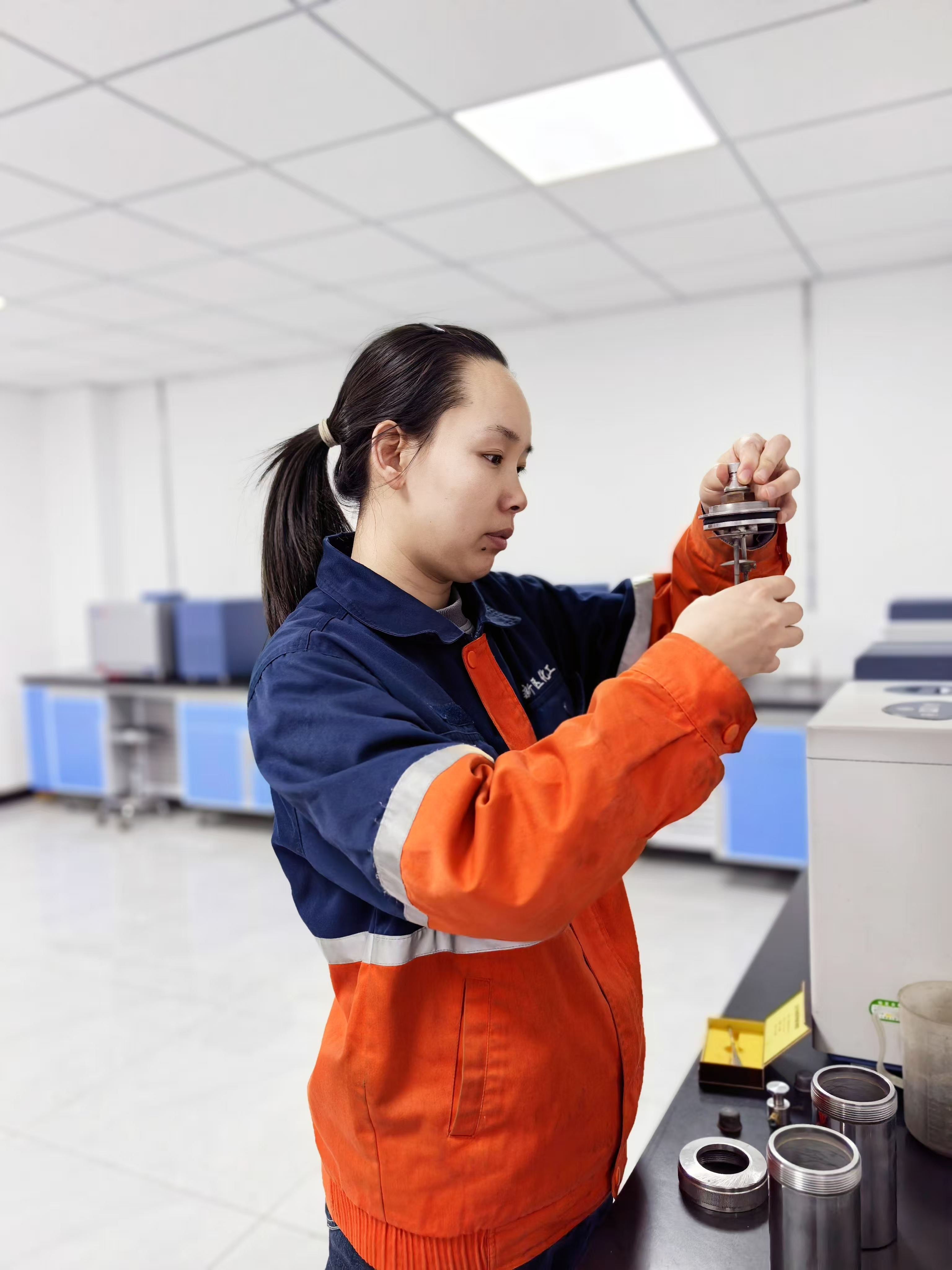 夜间22时40分,冯浩婷已来到化验室,开始检测当天的第一份锅炉水样。锅炉水质量直接影响锅炉运行,水质不佳易引发结垢、腐蚀,降低供热供电效率,甚至造成安全事故。冯浩婷小心量取适量水样,加入化学试剂后放入检测仪器,眼睛紧紧盯着屏幕。很快,初步检测显示水样硬度略超正常范围,冯浩婷深知问题严重性,迅速重新采样进行二次检测。近两个小时里,她专注重复检测步骤,不放过任何细节,最终确定准确数据并上报。