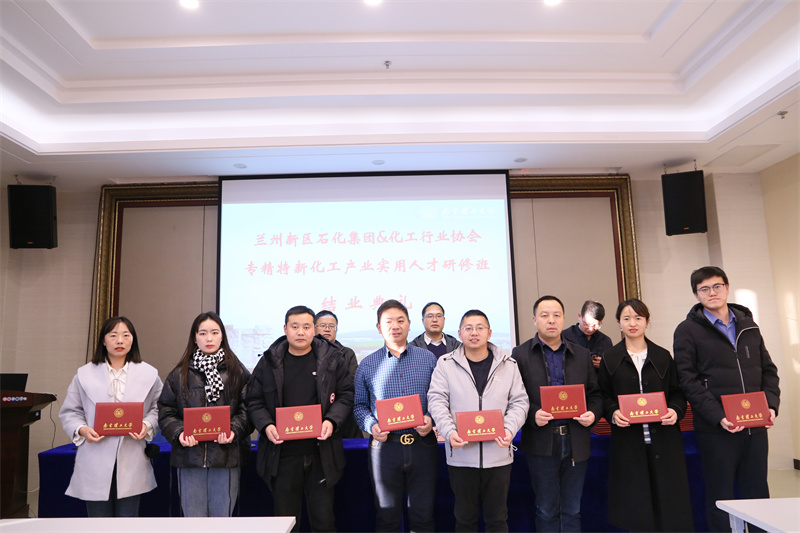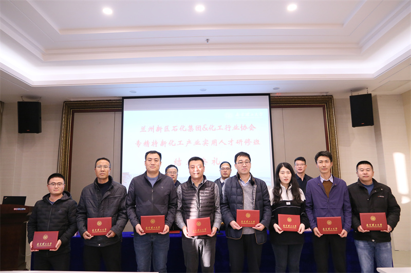 12月3日下午,由新区石化集团与南京理工大学继续教育学院合作举办的“兰州新区专精特新化工产业实用人才研修班”顺利结业。结业仪式上,为学员颁发了结业证书。