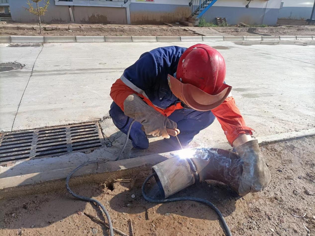 污水处理厂生化组合池排污泵管道短接焊接