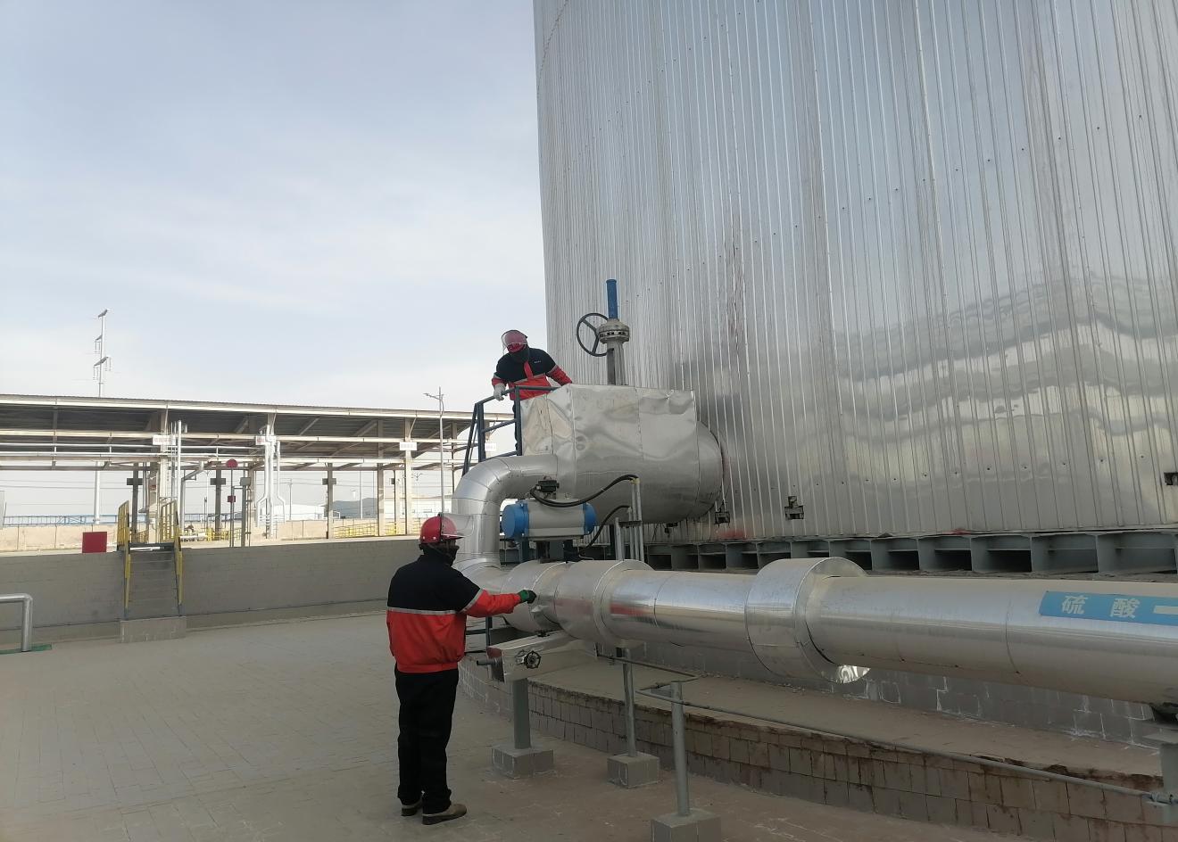 大年初一,接班后班组巡检人员按照巡检路线来到了硫酸罐区进行检查,查看储罐温度、压力、现场管线、阀门的状态。数九寒天、滴水成冰,但丝毫不影响他们的工作热情,他们严格按照巡检规程操作,从装卸栈台到罐区,从换热站到仓库,都留下了他们忙碌的身影。