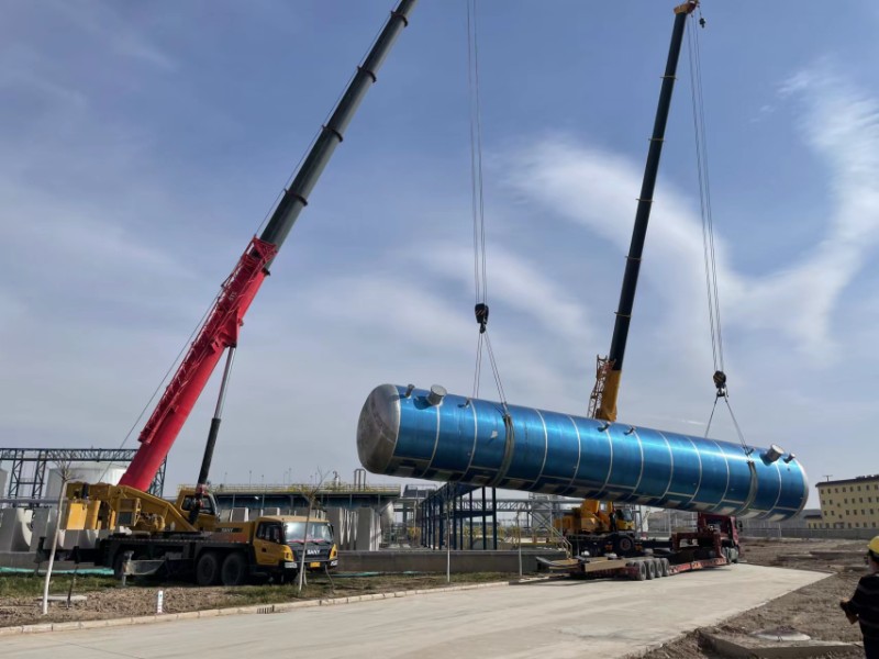 近日,疫情防控形势复杂严峻,这对于物流园货场项目建设来说,压力极大。设备到货时间延长,施工工地人员密集,流动性大,项目建设面临材料、设备、人员等多重压力。化工商贸公司多方协调,克服种种困难,终于于11月15日,硝酸储罐顺利运抵物流园货场。检查吊车司机、运输司机等“两码”正常并按要求报备后,物流园货场立即安排,各种机械轮番作业,公司职工和施工单位人员在工地上挥汗奋战,整个施工现场繁忙而有序,经过了十二个小时的奋战,克服了吊装过程中种种困难。在公司领导、项目部技术人员的协同下,物流园货场罐区主体工程之一——直径4米、高度近24米、吊装总重量近30吨的硝酸储罐顺利吊装并精准落位。截止发稿,新安装硝酸储罐已进行罐顶盖板和防护栏杆焊接作业,预计月底,硝酸储罐所有辅助设施将全部完成。