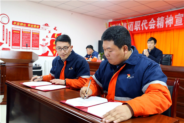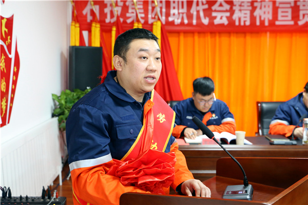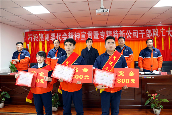 会上,对集团公司第一届一次职工代表大会暨2021年工作会议精神进行了宣贯,并特别邀请集团公司2020年劳动模范雪生谋、刘宗强、杨少伟三名同志进行了劳模精神宣讲。