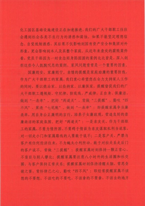 【廉政家书】致广大干部职工家属的一封信!