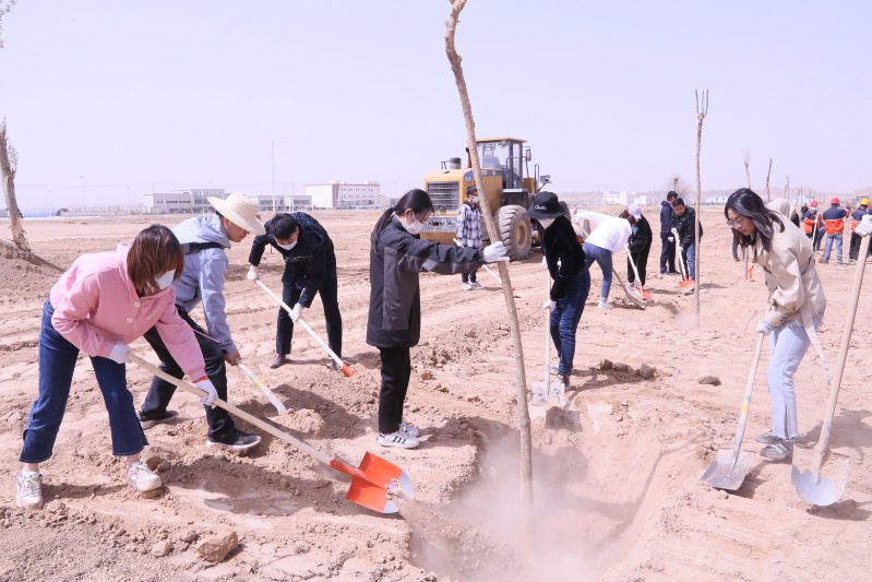 为进一步增进支部间学习交流,促进支部融合发展,增强基层党建工作新动力,同时深入落实党支部共建协议有关内容。4月28日上午,甘肃兴陇基金管理有限公司与兰州新区石化集团党员干部职工共计65人在新区化工园区检测检验及公共服务平台项目现场组织开展“支部共建新活力 义务植树添新绿”联合主题党日活动。