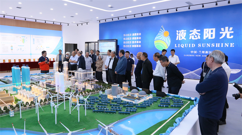 在“液态阳光”展馆,项目负责人李春新向退休老干部们介绍了项目的基本情况,大家饶有兴趣地聆听,频频点头表示赞叹,并不时提出自己的疑问,石化集团公司工作人员也耐心地予以解答。