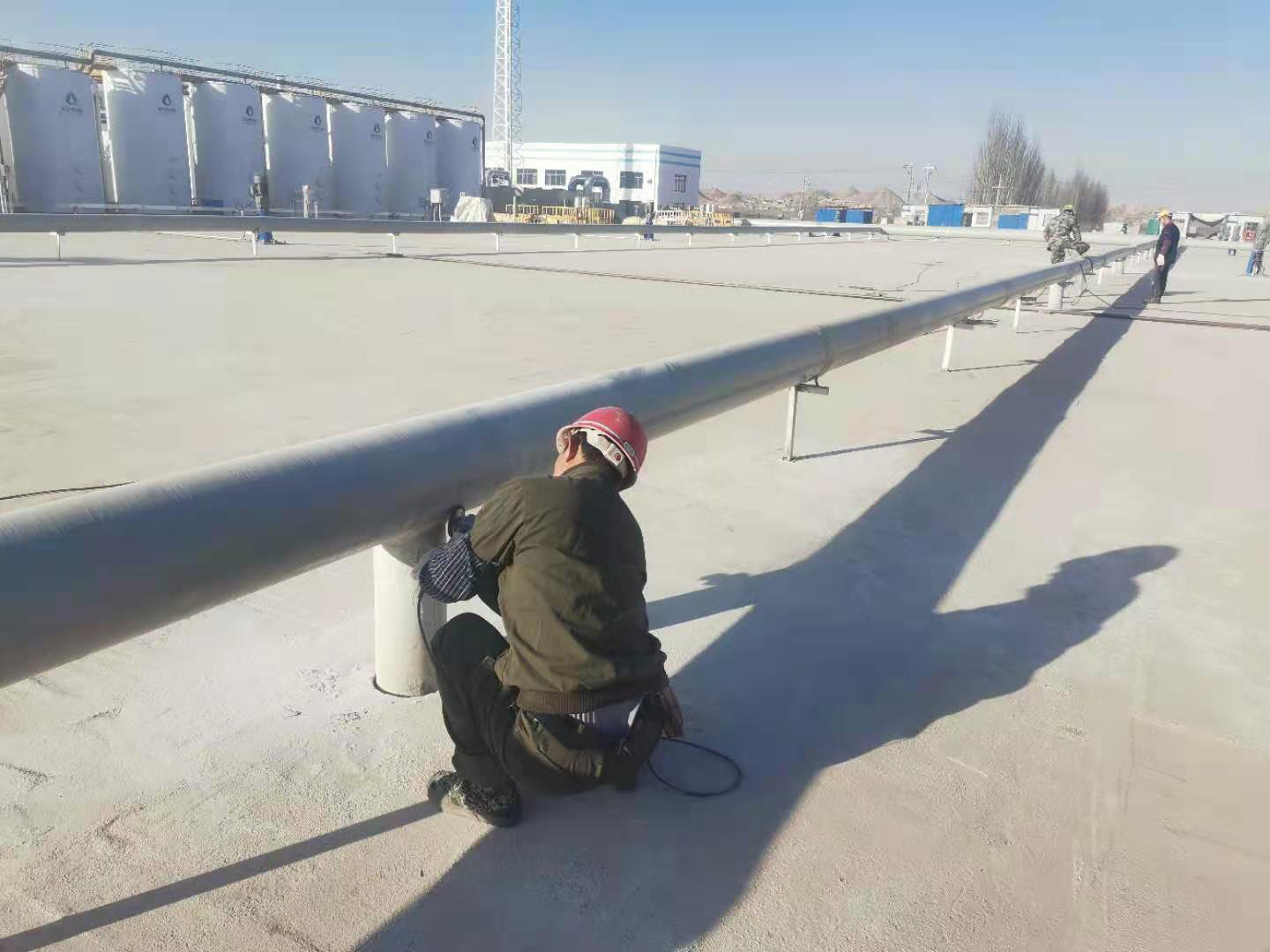 年前受气温影响,污水处理厂在土建施工、仪表设备调试及工艺管线安装方面还存在着一些遗留工作。为快速做好现场收尾工作,助力污水处理厂试生产工作顺利进行,博石环保公司积极组织项目复工复产。